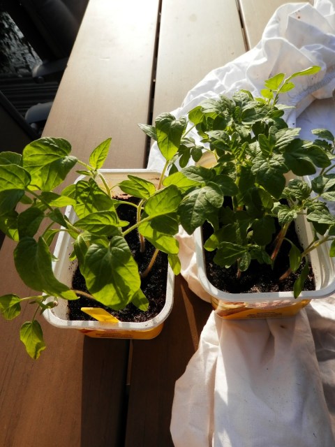 Vandaag was het tijd om de tomaten te verspenen. Verpotten dus. Ze groeiden het bakje uit en hebben al flinke wortels. Voorzichtig los gemaakt met de achterkant van een lepel en met een beetje potgrond in een plastic beker overgeplant. Gelijk water erbij en afwachten. Een plastic beker is natuurlijk niet zo duurzaam en groen, maar aangezien ik te weinig potjes heb moet het maar. Ze gaan wel jaren mee. Ik heb het ook eens met wc rollen geprobeerd maar deze beschimmelden steeds, dus daarom toch maar met plastic bekers.