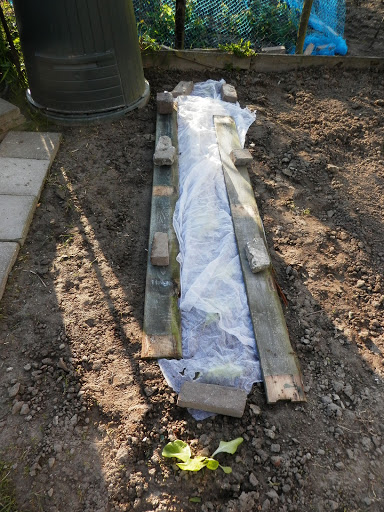 Vanmiddag het gaas tegen het hek aan gezet, tegen de konijnen. Ik heb er nog nooit één gezien in de tuin maar ze schijnen er echt te zitten. Voor Luna ook wel veiliger, want ze kon zo onder het hek door.
