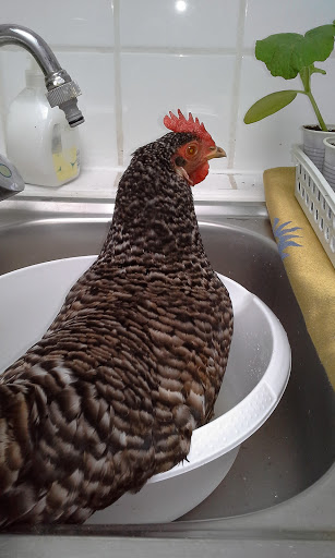 Ieder jaar als het warmer wordt hebben we een broedse kip. Voor diegene die niet weten wat een broedse kip is, de kip wil dan graag een ei uitbroeden😉 Ze zitten dan de hele dag op het ei, of dit ei nu van zichzelf is of van een andere kip maakt niets uit. De zwarte legt momenteel geen eieren dus gaat ze lekker op de eieren van de kleintjes zitten. Ook als er geen ei ligt gaat ze in het legnest zitten. Eten en drinken doet ze zeer weinig. Drie keer per dag halen we haar van het nest. Handschoenen zijn dan handig want anders hangt ze aan je vingers. Leuke hobby, kippen😁