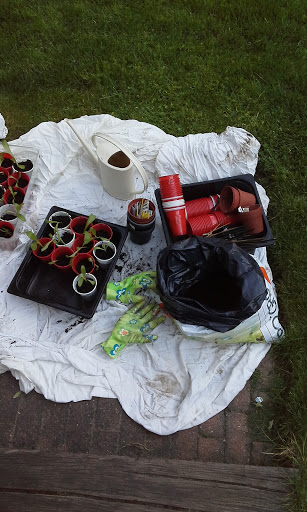 De tomaten staan inmiddels in de kas. De overige planten gaan weg. Ze worden geel doordat er geen ruimte meer is voor de wortels. Ik heb er inmiddels al heel veel weggegeven maar iedereen is voorzien en steeds maar water geven kost ook veel tijd dus weg er mee.