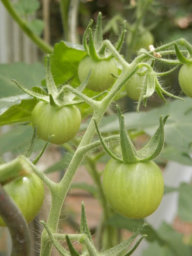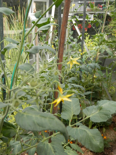 In de kas zijn alle planten gediefd en bladeren afgeknipt. Ik had een emmer vol. Ik heb nogal de neiging om de planten te dicht op elkaar te zetten….niet echt handig want je moet ook nog lopen en werken in de kas. Om te voorkomen dat mijn kleren onder de gele vlekken zitten of ik niet meer bij de tomatenplanten kan haal ik zo af en toe bladeren weg. Deze groeien gewoon weer aan. Als de tomaten gaan rijpen doe je dat sowieso zodat er meer zonlicht bij de vruchten kan komen.