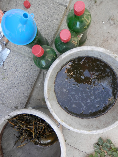 Gisteren heb ik de brandnetelgier gezeefd en in oude wijnflessen gebotteld als een echte sommelier, haha😊