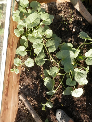 Ook grappig dat beiden ander blad hebben, de foto hierboven is van de watermeloen, en die daarboven van de galiameloen.