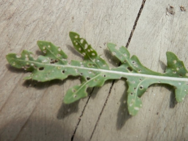 Tot slot… natuurlijk hebben we dit jaar ook bijzondere beestjes. De gaatjes in de rucola worden veroorzaakt door de aardvlo… en het zal er niet zomaar eentje zijn😊 Het schijnt dat ze niet houden van gemulchte grond, dus misschien dat ik er nog wat gemaaid gras langs ga leggen, maar tot die tijd eten we rucola met gaatjes.
