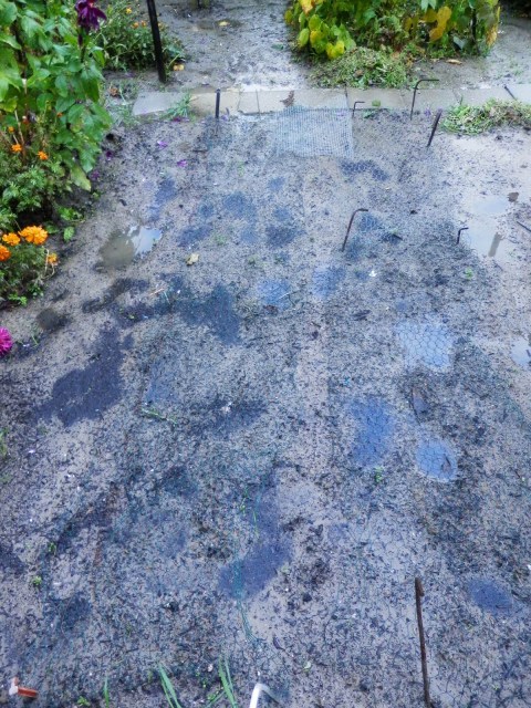 En dan vandaag…… alweer regen. Heel veel regen. Er is afgelopen weekend al veel gevallen ( zo’n 50 mm) en terwijl ik deze blog zit te schrijven hoor ik nog veel meer regen op het dak van de bijkeuken. Eén van de ibc-containers op de moestuin zit al vol, en ik bedacht me net dat morgen de pijp weggehaald moet worden, anders loopt hij over. Als alles er naast valt zou de vloer van de schuur wel eens nat kunnen worden.