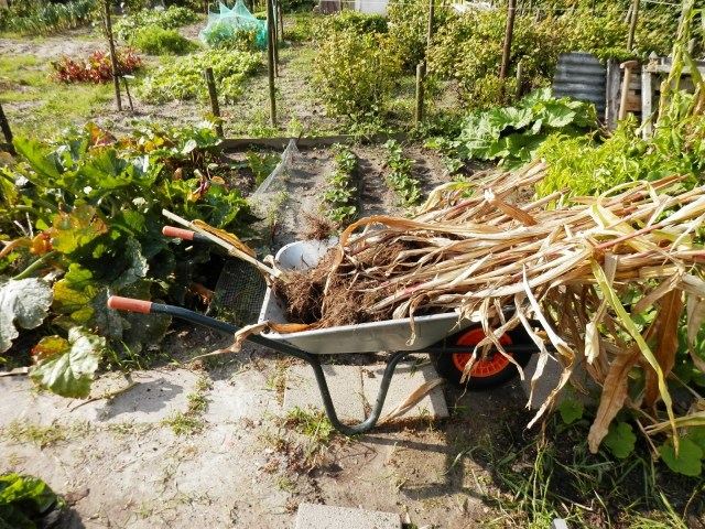 - Maak de grond schoon en onkruidvrij voordat je begint. Het laatste wat je wil is dat je zelfgemaakte compost later vol zit met wortels van kweekgras of andere ellende.