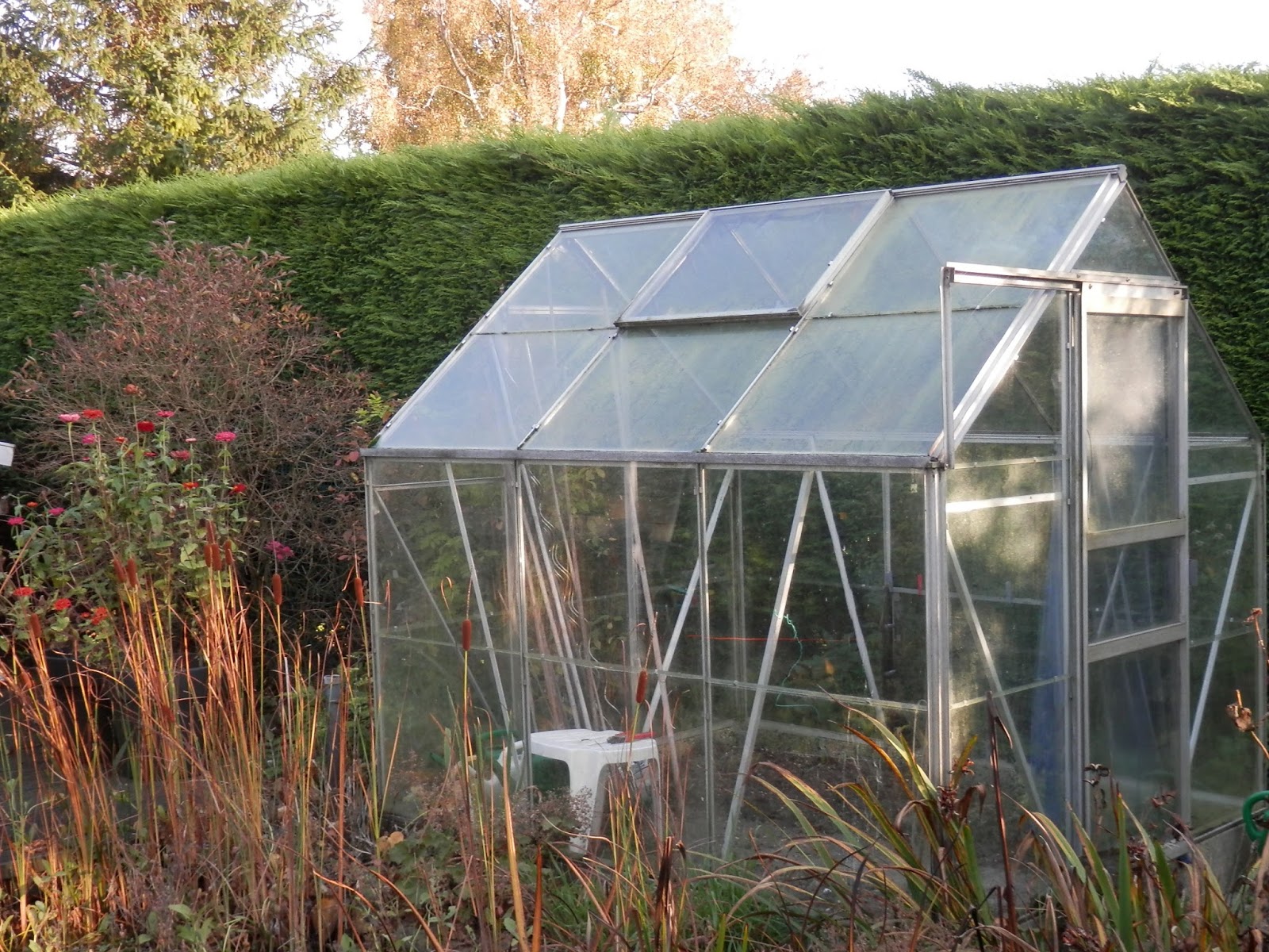 De kas is toe aan een poetsbeurt, hij ziet helemaal groen. ( op de foto niet zo goed te zien) Nu hij leeg is zie je pas goed hoeveel aanslag er op de ramen zit. Omdat dit in de winter alleen maar erger wordt maak ik hem schoon. In het voorjaar doen we dat nog een keer, voordat de jonge aanplant erin gaat.