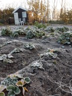 De moestuin vroeg in de ochtend in december