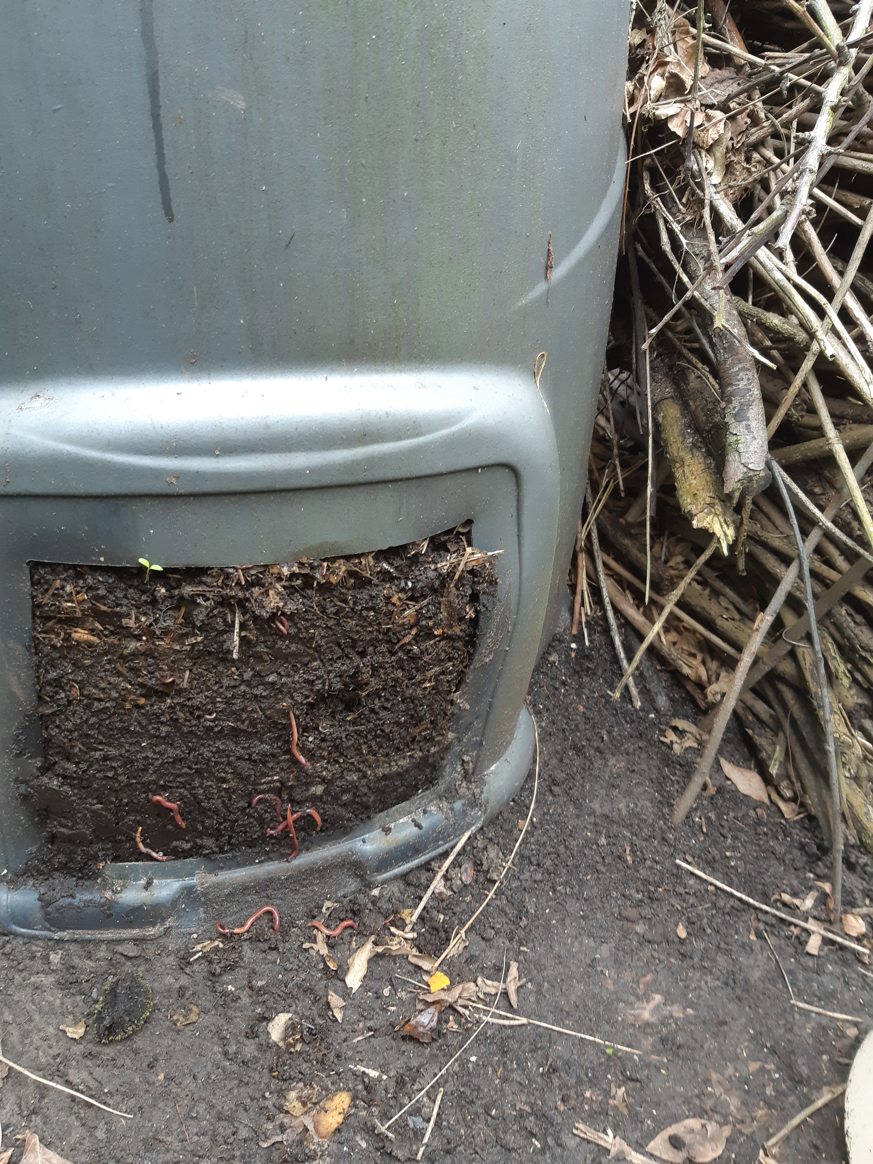Na het spoelen dek ik de grond af met nieuwe compost. Altijd spannend of de compost zijn werk heeft gedaan maar als ik het compostvat openmaak ben ik tevreden. Verse compost! Er zitten nog wel wat wormen in, wat betekent dat de compost nog niet helemaal klaar is maar voor mij is het goed genoeg. Aangezien de eerste aanplant pas eind april of begin mei zal zijn kan de compost nog iets verder rijpen terwijl het in de kas ligt.