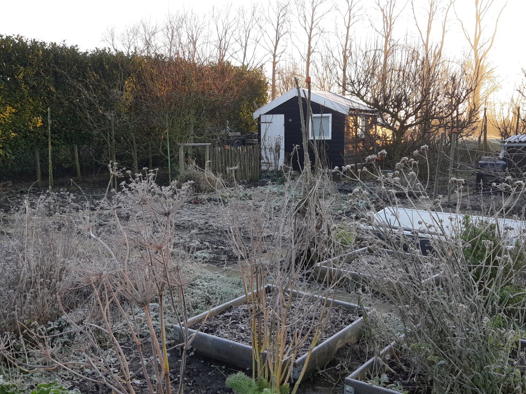In de moestuin heb ik ook een rakkenril. Takken vergaan na verloop van tijd dus ook deze is opnieuw hersteld en verstevigd met nieuwe takken. Het oude hout ging in de versnipperaar die ik voor mijn verjaardag kreeg. Met deze houtsnippers wil ik de komende tijd de compost verbeteren en ben ik gelijk van al die vervelende takken af die heel lastig zijn bij het uitscheppen van de composthoop.
