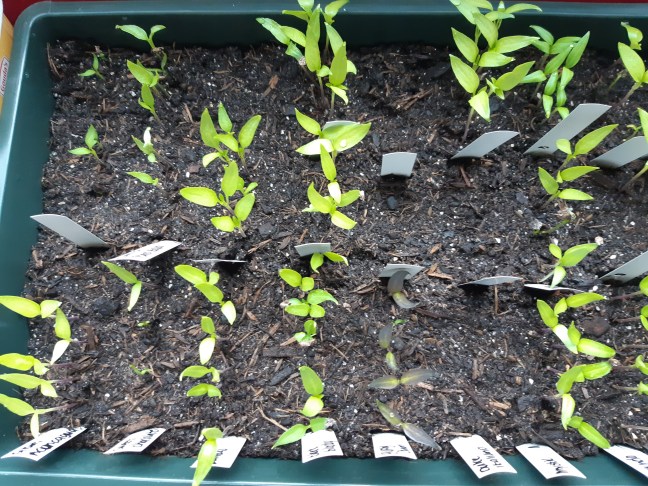 De paprika zaailingen groeien niet goed. Ze zijn eind januari gezaaid en kwamen redelijk snel op, maar hebben nog altijd geen echte blaadjes. Het is te koud in huis en vaak vergeet ik ze op de centrale verwarming te zetten ’s avonds. Daarom heb ik ze vandaag voor het eerst op het warmtematje gezet. Ze zien er nog altijd goed uit, de kiemblaadjes worden groter en het steeltje niet langer, dus ik heb nog hoop op groei. Vanaf 11 maart zijn er volgens de zaaikalender geschikte dagen om vruchtgewassen te verspenen dus tot die tijd moeten ze nog even door. Dan is ook de voeding in de potgrond een eind op.