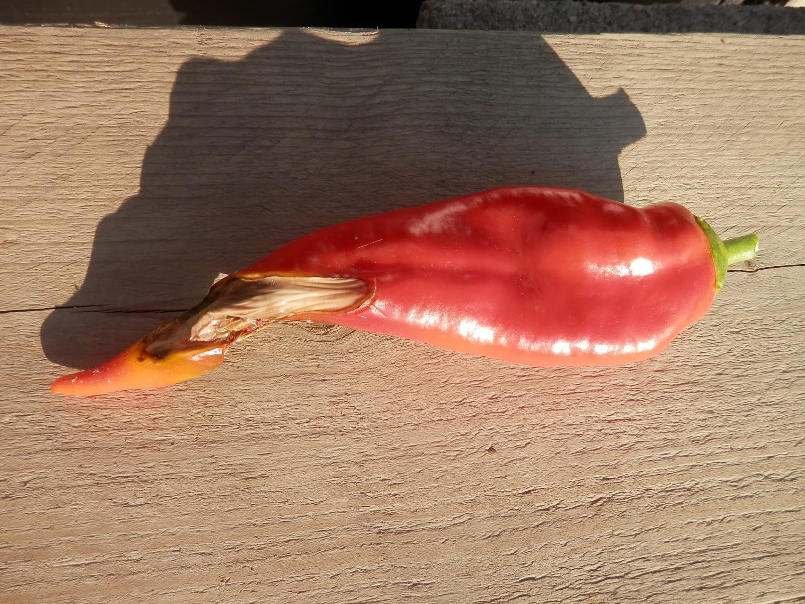 Er gaat ook wel eens wat mis… waarschijnlijk door de droogte, of aangevreten door een slak en door de beschadiging zo gegroeid. We konden het bovenste deel toch nog opeten.