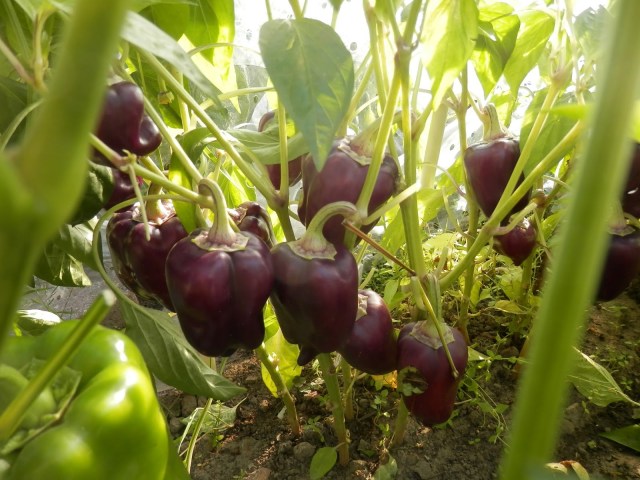 De paprika’s doen het ook dit jaar weer supergoed, maar we moeten weer veel geduld hebben. Afgelopen week een gedeelte van het blad verwijderd, zodat de zon er goed bij kan. De paarse moeten nog rijpen naar dieprood, maar je kan ze ook onrijp eten. Dan zijn ze wel minder zoet. Het is eigenlijk net als bij de groene paprika’s, die zijn ook nog niet rijp maar kan je ook gewoon eten.