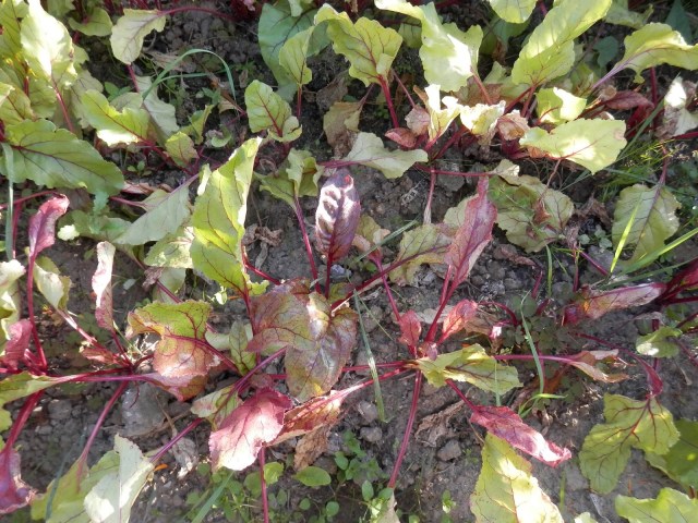 De bieten hebben geel blad gekregen, ik heb gelezen dat ze dan een tekort aan kalium kunnen hebben dus ik heb ze nog een beetje houtas  gegeven. Hopelijk helpt het.  Vooral de kleine bietjes hebben geel blad.