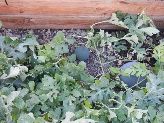 De watermeloen doet het goed. Vorig jaar ook een grote meloen gekweekt maar te vroeg geoogst, hopelijk gaat dat dit jaar beter.