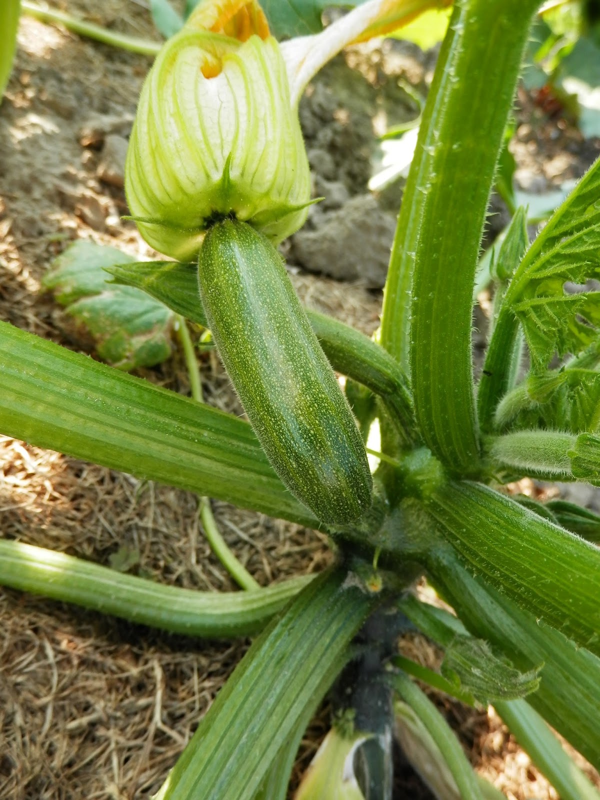 De courgettes komen er ook aan! (lijkt heel groot maar in werkelijkheid maar twee centimeter😊) Nog even geduld.