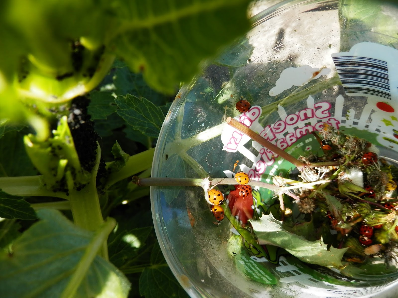 Daarna naar de oude tuin, op zoek naar lieveheersbeestjes. Net als vroeger, toen we nog klein waren, lieveheersbeestjes in een potje. Ik vond het nog leuk om te doen ook😊😊