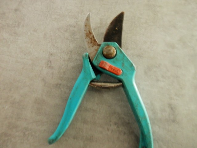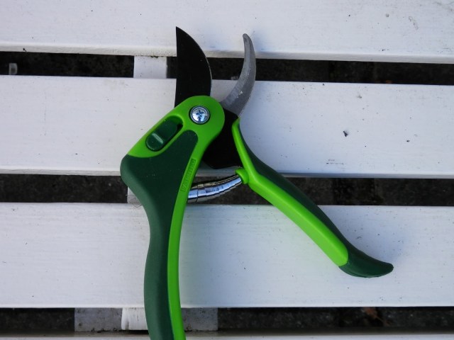 Gardena verkoopt tegenwoordig ook onderdelen, dus voor €4,50 en een beetje gepruts om de veer er in te krijgen kan ik de oude schaar ook weer gebruiken. Als dat niet duurzaam tuinieren is.