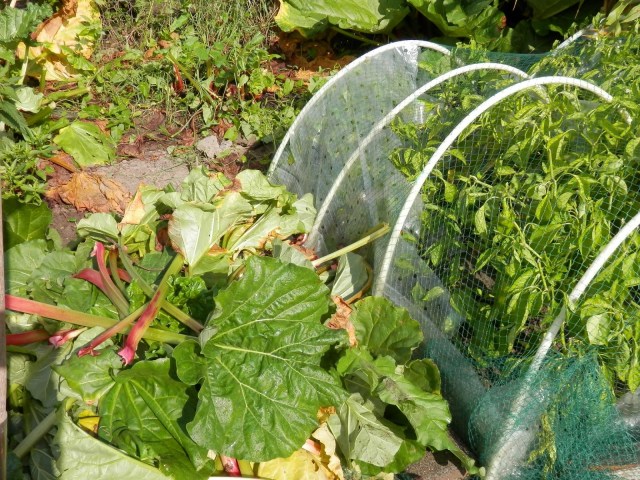 Dus zaterdagochtend weer even fanatiek begonnen om een nieuwe plek voor ze te maken. De oude rabarber van mijn voorganger uit de grond gehaald, en de rucola stond al in het zaad dus die kon er ook uit. En, wat meer pijn deed, 8 paprikaplanten gerooid. Daar hingen al wat groene paprika’s aan maar er waren ook planten waar niets aan hing. Dus weg ermee.