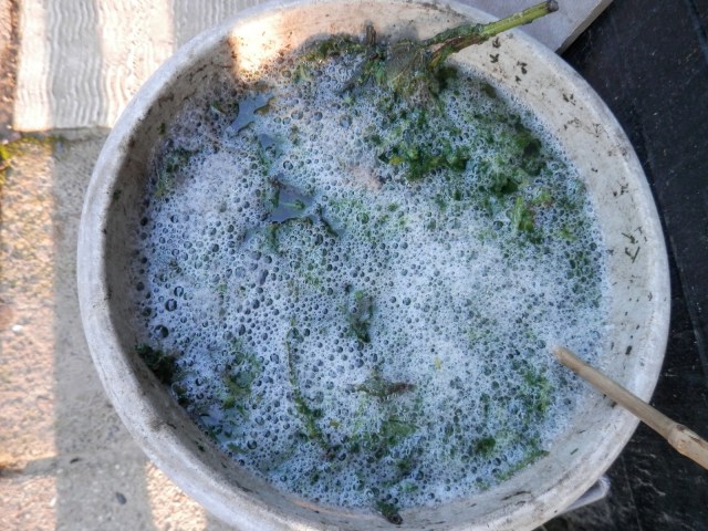 Deze foto zondag gemaakt van de brandnetelgier. Het begint al te schuimen na het roeren.