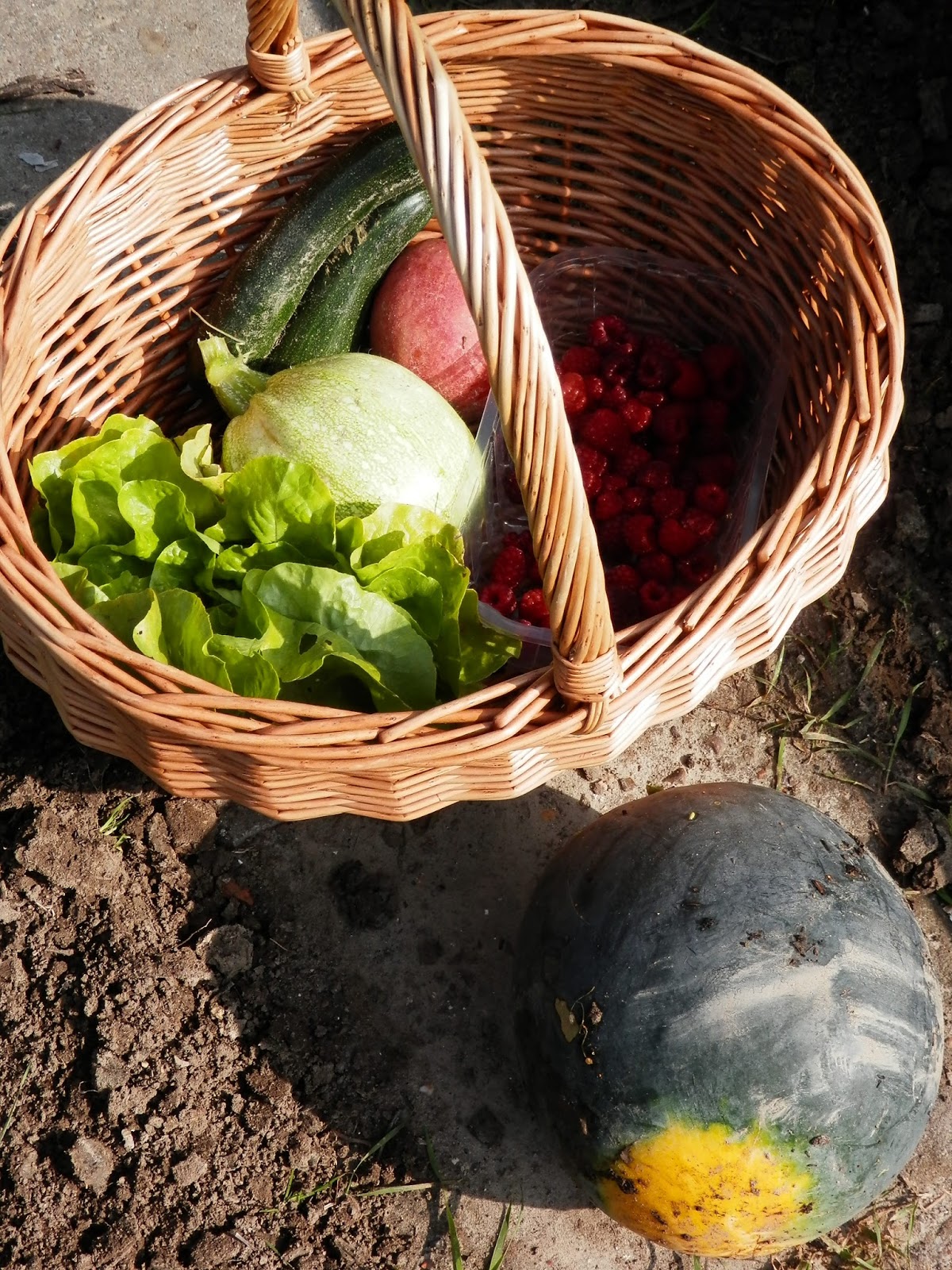 Verder wordt er nog steeds geoogst… wortels, watermeloen ( jaja😊) pompoenen, frambozen, sla en courgettes