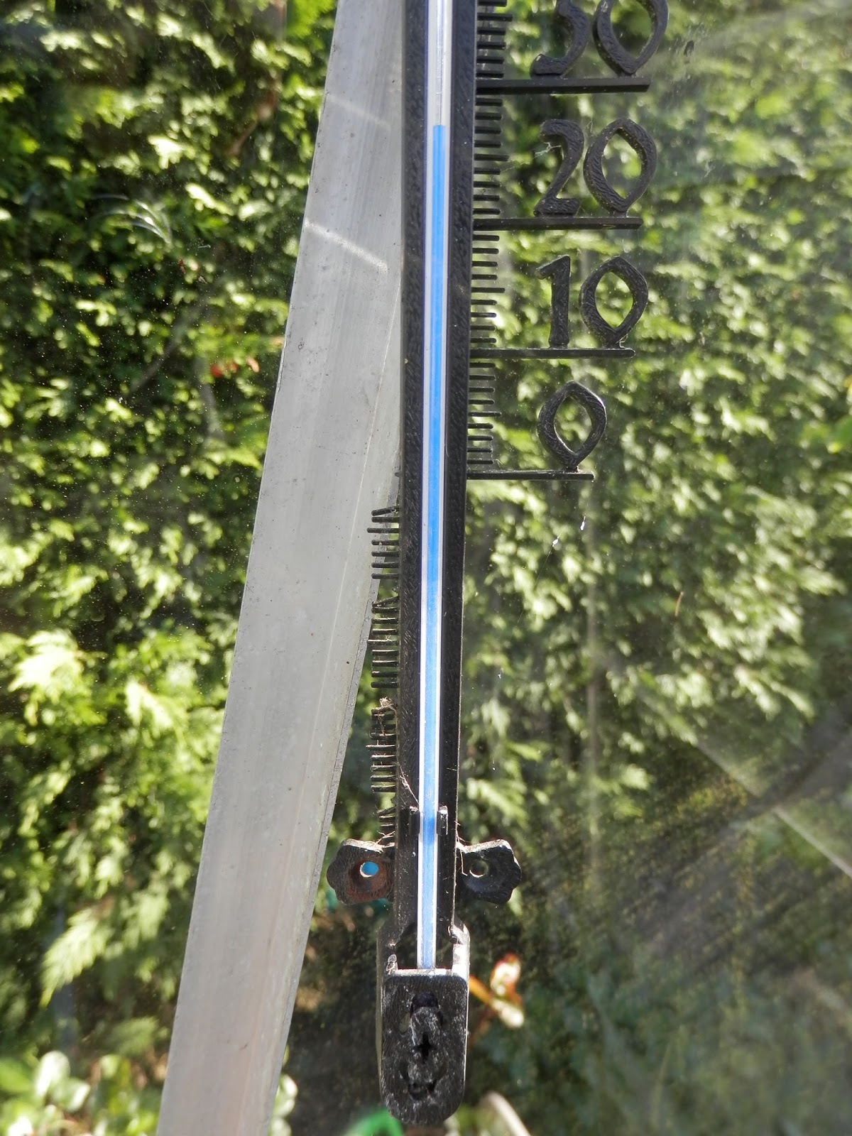 De temperatuur in de kas was vanavond om 19.00 uur nog ruim 25 graden!