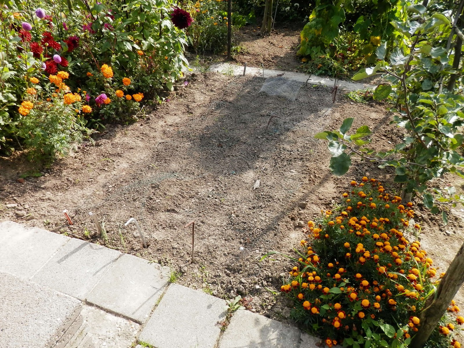 Verder met de tuin. Er is nog veldsla gezaaid. Dit moet eigenlijk in augustus, maar door de vakantie is het een beetje verlaat.  En omdat er een natte periode aan komt is het nu een prima tijdstip.  Hopelijk slaat ze goed aan. Veldsla houdt eigenlijk van een wat vastere grond, maar hier hebben de aardappels gestaan dus het is een gok of het zal lukken.  Andere jaren stampte ik de grond aan met de hark maar er overheen lopen ging sneller😊